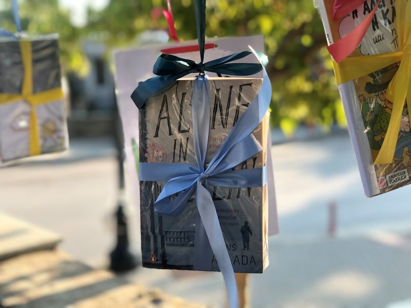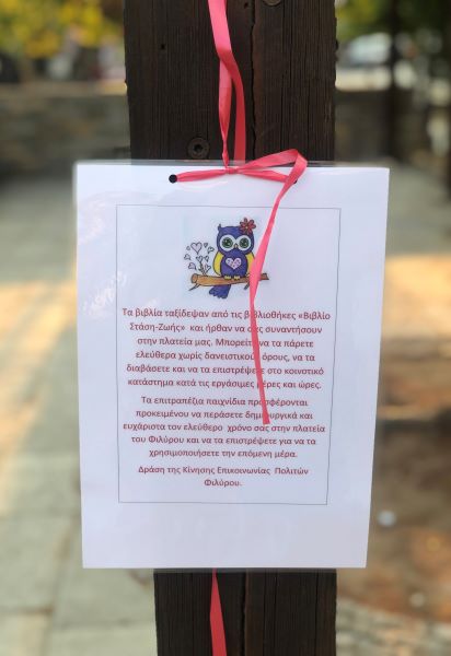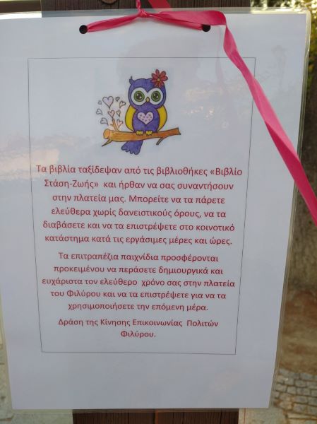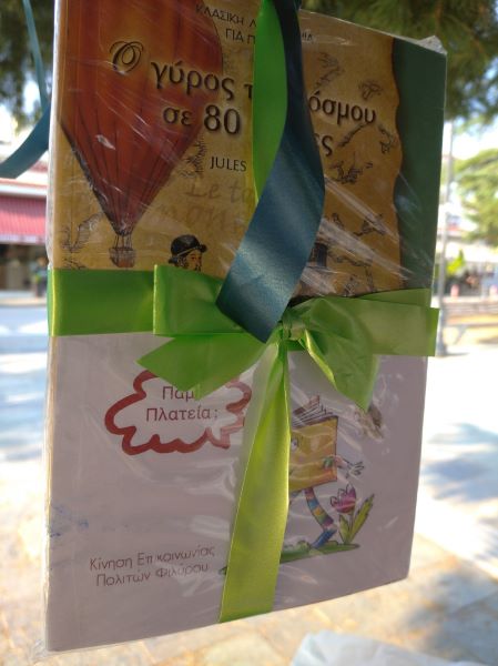 Στην πλατεία του Φιλύρου, απ' τα κλαδιά των δέντρων και τις πέργκολες, βιβλία και επιτραπέζια παιχνίδια όμορφα τυλιγμένα και κρεμασμένα με πολύχρωμες κορδέλες, ήρθαν να μας συναντήσουν!